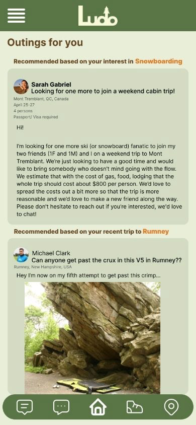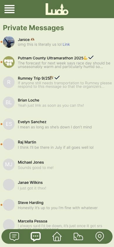For my senior capstone project, I was tasked with developing all parameters from scratch, and presenting this for my final grade. I decided to create an app for people looking for community in action, Ludo is the result.